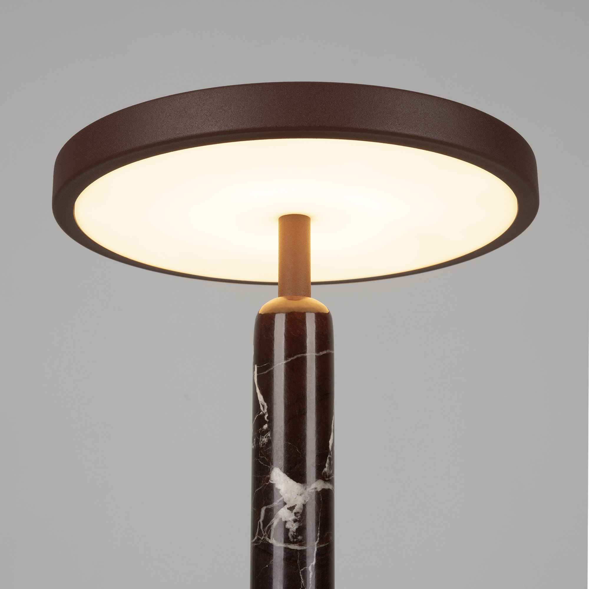 Настольный светильник ALYSS. С изменяемой цветовой температурой 2700/3200/4000К, переключается коротким нажатием на сенсорную кнопку на плафоне, диммирование происходит за счет ее удержания. Мощность 5 Вт, св. поток 195 лм, 39 лм/Вт, CRI>92, угол 110°, напряжение питания 230 В. Корпус из алюминия цвета бургунди, декоративная вставка из мрамора, степень защиты IP20. Размер: диаметр 225 мм, высота 300 мм. Пульсация <1%.